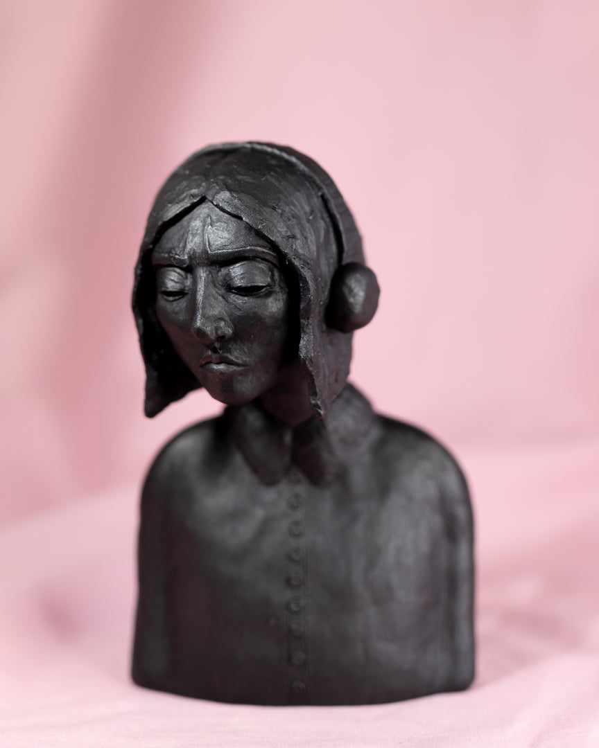 I studied for two years under Diane Shaw at the historic Stoker School in Bountiful, Utah before continuing to create in my own studio. I spent many years exploring wheel throwing, hand building, slip casting, and sculpting. Since 2024 I've settled into my favorite way to use clay through sculpting female busts with occasional surrealism sprinkled in.I like to work in small scale, my sculptures are no bigger than 8 inches tall. Tiny intricate details entice me.